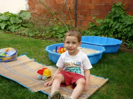 En attendant je profite du beau temps et je joue dans le jardin,