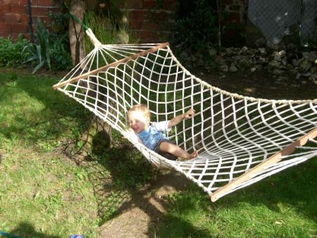 et la semaine dernière ( quand il ne faisait pas glacial) , trop dur la vie dans le jardin..... je précise que le hamac est à papa