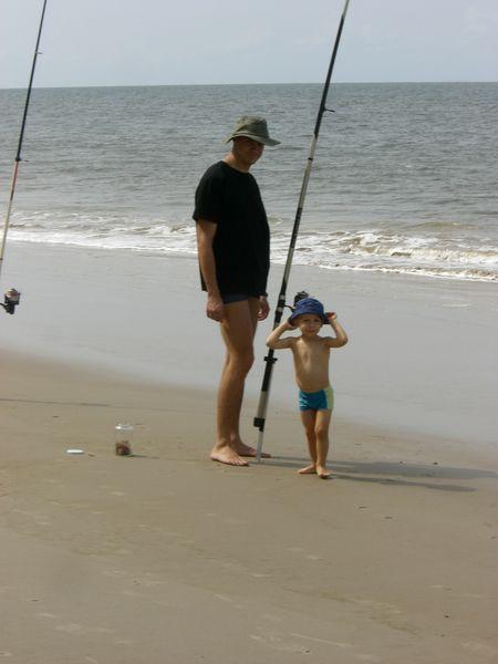 Le week end dernier, nous sommes allés à la plage.Les marées étaient plutot favorables, alors entre 2 chateaux de sable, j'ai aidé papa à la pêche. Heureusement que j'étais là.